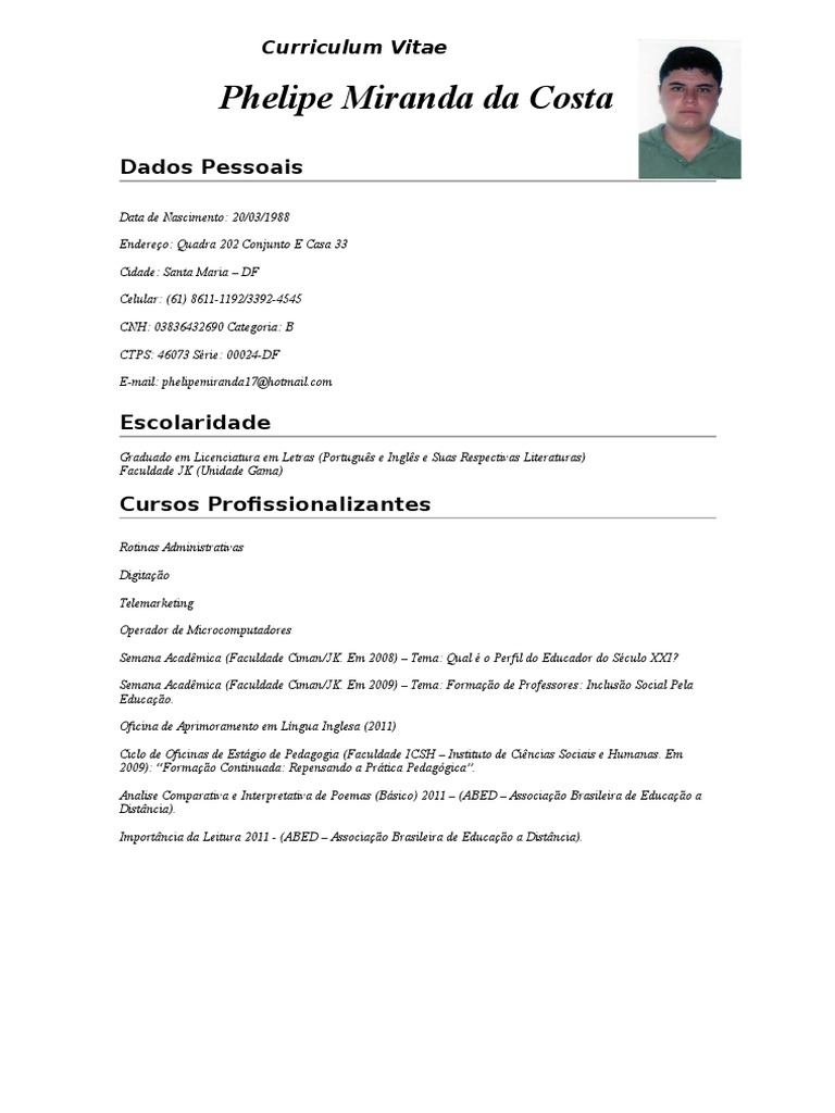 Curriculo Vite Em Português / Curriculum Vitae Em Ingles 20 Guides Examples : Modelo de curriculum vitae recepcionista.. Primeiro, terá de criar o seu perfil europass, fornecendo informações sobre as suas habilitações, formação, experiência profissional e competências. Socrátes da silva jr.* data de nascimento: Está com problemas para criar o seu currículo? O s curricula vitae da(s) pessoa (s) responsável (eis) pela coordenação/execução geral da acção proposta em nome de cada organização envolvida ou pela aplicação do programa de trabalho da organização (no máximo, quat ro páginas por curriculum vitae). Recebe sugestões de emprego específicas ao teu perfil e interesses.